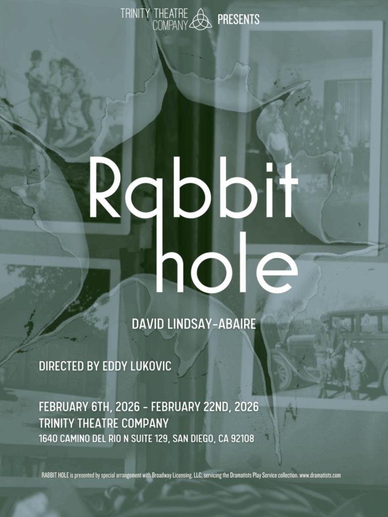 Trinity Theatre Company is thrilled to announce their Grown Up Stage’s production of Rabbit Hole written by David Lindsay-Abaire running from February 6th – 22nd, 2026. The production is directed by Eddy Lukovic. Rabbit Hole runs at Trinity’s Mission Valley location in the Mission Valley Mall. To learn more or purchase tickets https://trinityttc.org/current-productions/